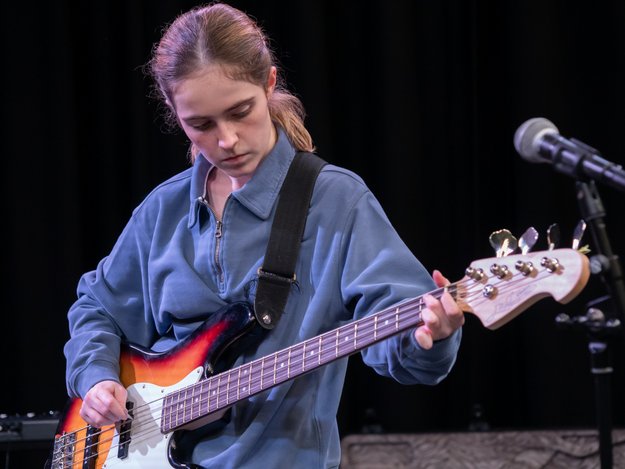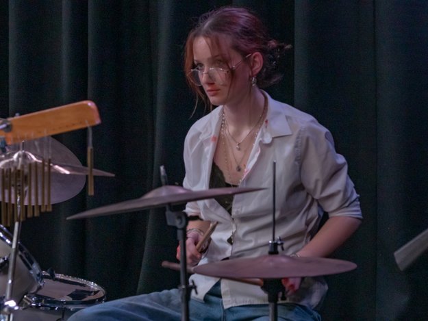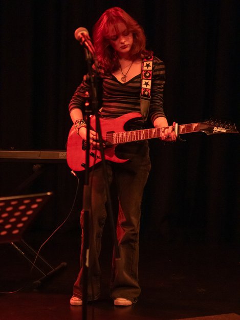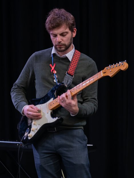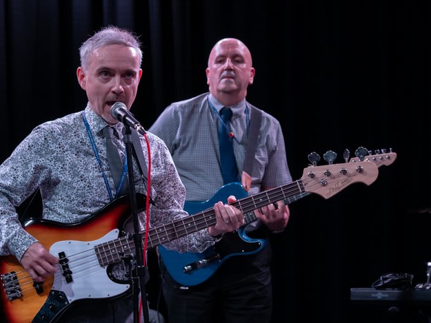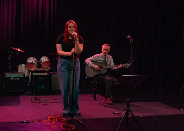 Of course, an event like this wouldn't be complete without the guest appearance of the Staff Band who opened the night, because, as Mr Quinn said, "Nobody likes to go first." Mr Quinn led on vocals and guitar, with Mr Fleming and Mr Rhodes on bass and acoustic guitars and Mr Smith on percussion and they played to a great reception! Mrs Hambleton also accompanied on keyboard throughout the night and along with the whole music department, has been working with the students on their performances for many weeks.